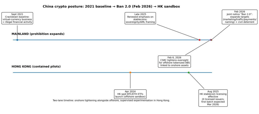 China’s February 2026 regulatory blitz also clarified where digital assets are permitted: in tightly supervised, permissioned tokenization lanes.
