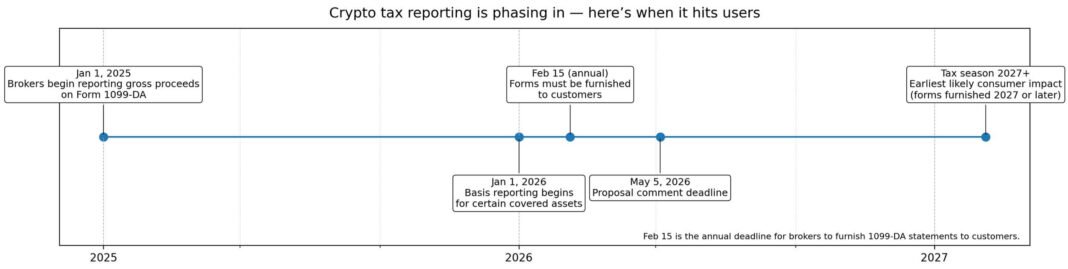 Starting with transactions on or after Jan. 1, 2025, crypto brokers must file Form 1099-DA reporting gross proceeds.
