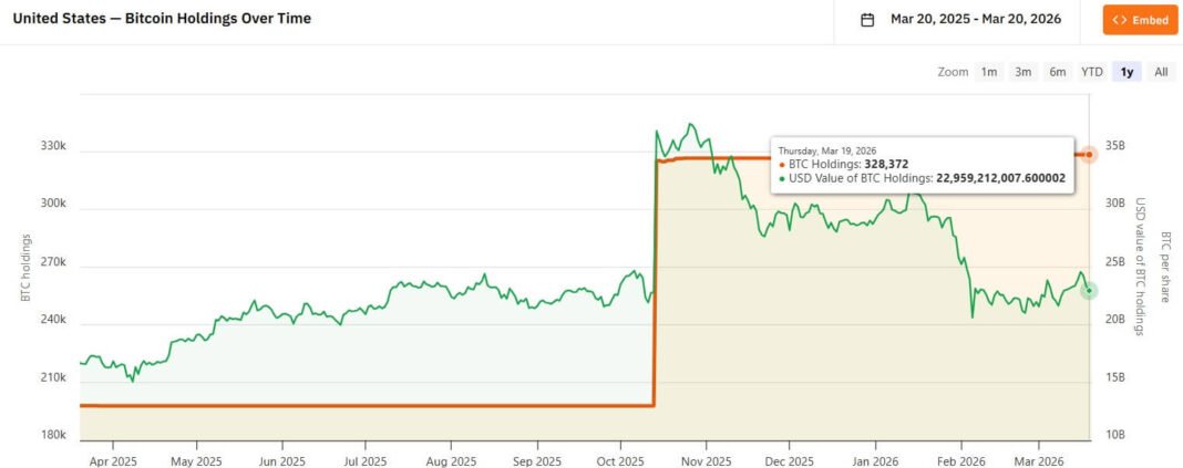 US Government Bitcoin Holdings (Source: Bitcoin Treasuries)