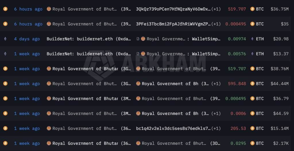 Bhutan Continues Bitcoin Sell-Off with $37M Transfer to Binance