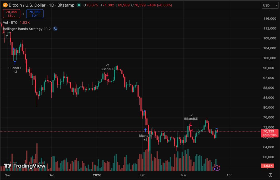 Implied volatility indicators suggest peak fear has passed, with crypto markets leading traditional finance in pricing risk, even as BTC USD struggles to reclaim key support. Trading near $70,000 following a 2% corrective slide over the last 24 hours, the market leader is flashing conflicting signals.