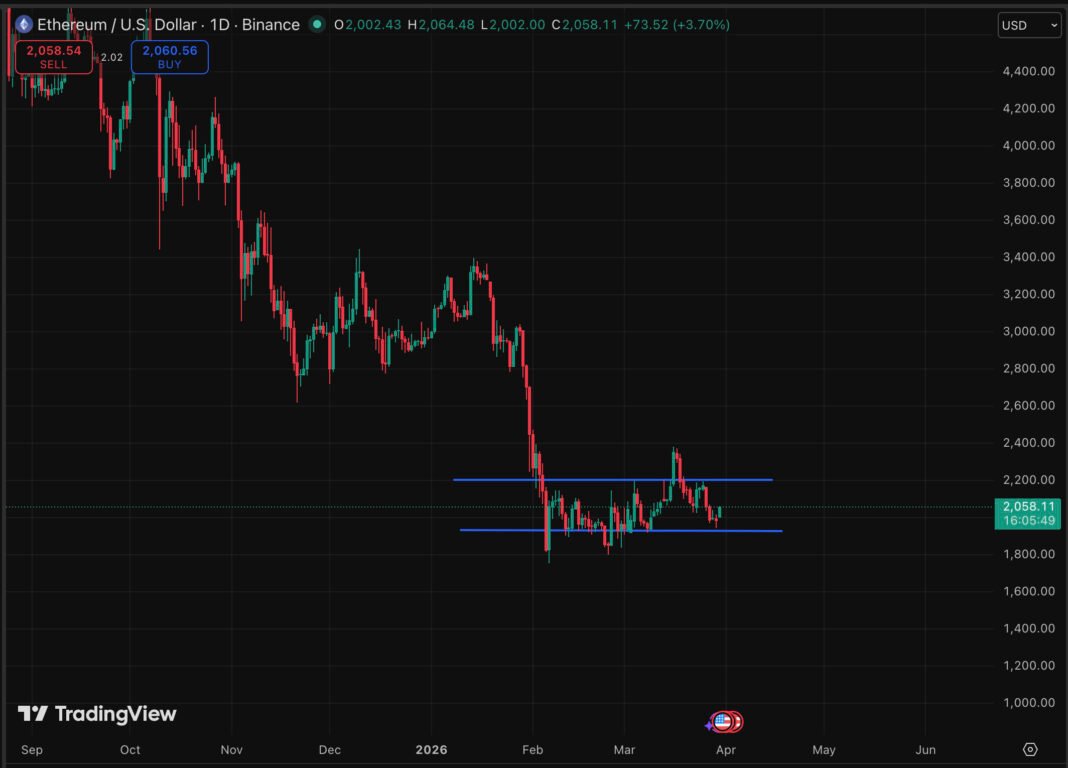 ETH is currently trading at $2,052, clinging to a psychologically significant level after a brutal drawdown. The asset peaked near $4,900 in October 2025 before collapsing to under $2,000 last week, a decline exceeding 50%. The recovery since then has been tentative at best.
