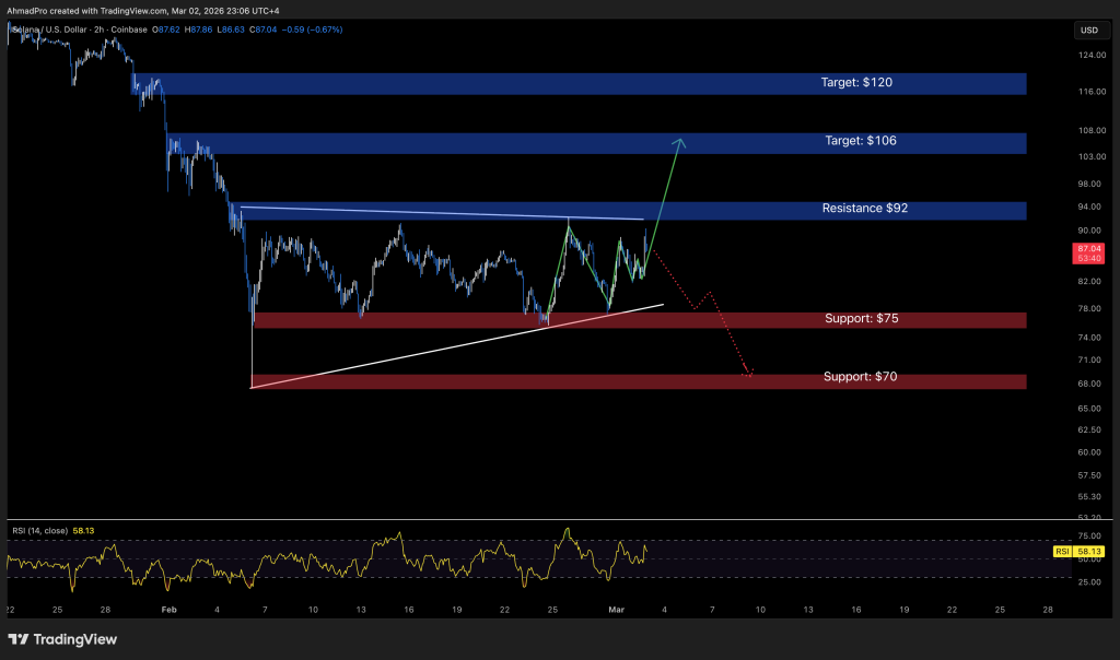 Solana just bounced hard from $75 and is now knocking on the $92 door.