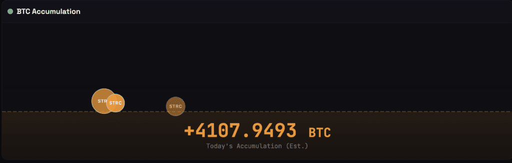 By end of day in New York, trading activity implied the firm had already raised enough capital to acquire more than 4,000 BTC, marking the largest single-day bitcoin purchase funded through STRC since the instrument launched.